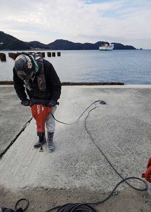 安全性において機器が軽量であり尚且つ、コンクリート破砕時のコンクリートガラの飛散も少なく、安全に施工が行えます。